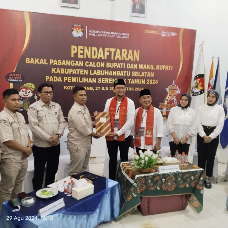 MARKIBONG // KOTA PINANG – LABUSEL, SUMUT – Diatas dua ribuan lebih massa militan/ simpatisan serta massa partai pendukung dari lima partai koalisi mengantarkan calon Bupati dan Wakil Bupati Labusel,Fery Syahputra Simatupang,SH,dan Syahdian Purba Siboro,SH.untuk mendaftar ke Komisi Pemilihan Umum (KPU) Labusel di Jalan Lintas Sumatera (Jalinsum),Kota Pinang Labuhanbatu Selatan,kamis (29/8/2024).