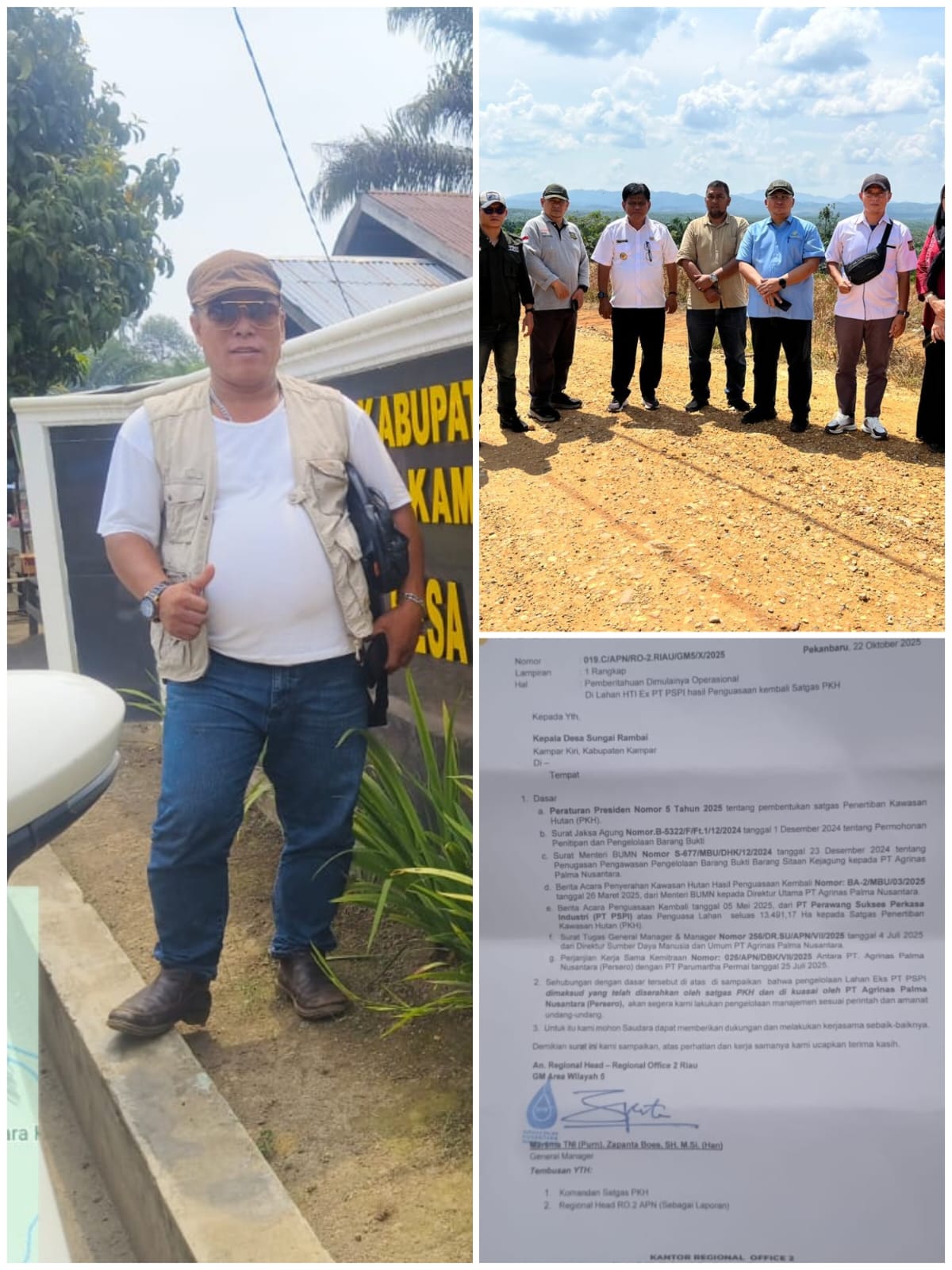 Berdasarkan data yang diterima, PT Agrinas Palma Nusantara telah melayangkan surat kepada Kepala Desa Sungai Rambai, perihal pemberitahuan dimulainya operasional di lahan HTI Eks PT. PSPI hasil penguasaan kembali Satgas PKH tertanggal surat pada 22 Oktober 2025.