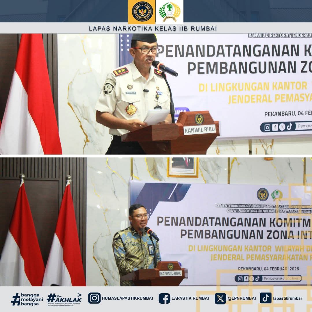 PEKANBARU || MARKIBONG.COM — Kepala Lembaga Pemasyarakatan (Lapas) Narkotika Kelas IIB Rumbai turut melaksanakan Penandatanganan Komitmen Bersama Pembangunan Zona Integritas yang digelar di Kantor Wilayah Direktorat Jenderal Pemasyarakatan (Ditjenpas) Riau, Rabu (4/2/2026).