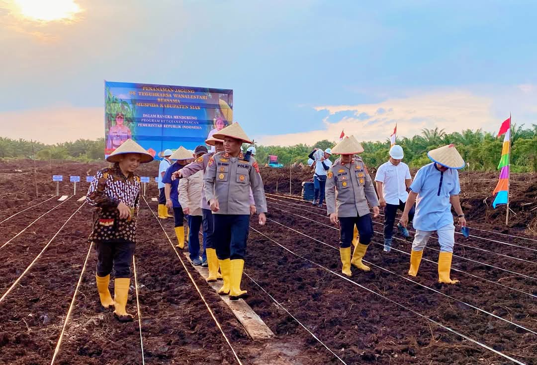 Acara dimulai dengan sambutan dari Kapolres Siak yang menyampaikan pentingnya kolaborasi antara berbagai pihak untuk memperkuat ketahanan pangan dan mendorong sektor pertanian agar semakin berkembang. Setelah itu, dilanjutkan dengan penanaman jagung secara simbolis oleh Kapolres Siak bersama dengan Pimpinan PT. TKWL dan tamu undangan.