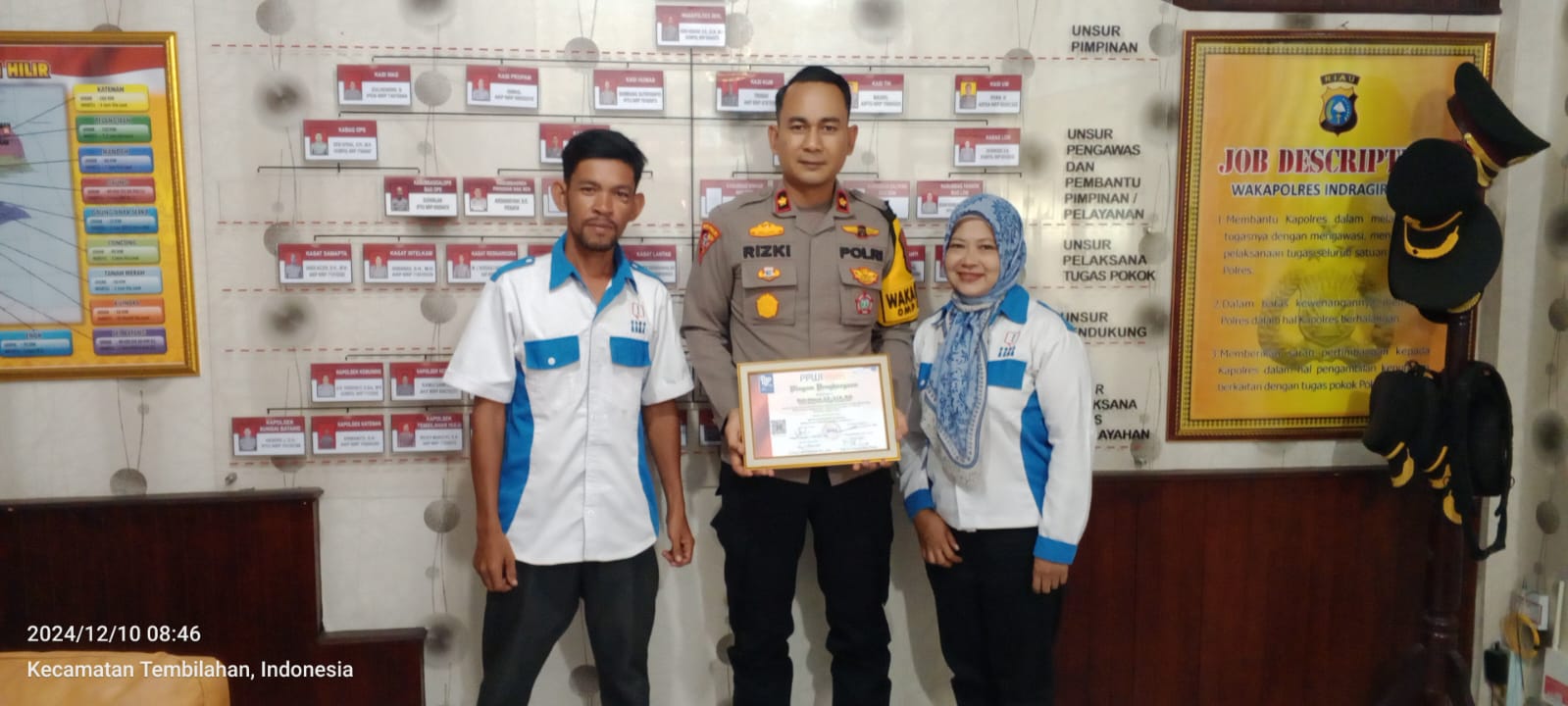 Markibong.com // Tembilahan – Ketua Satuan Tugas Saber Pungli Indragiri Hilir (Inhil), Wakapolres Rizki Hidayat, S.E., S.I.K., M.H., menerima penghargaan berupa piagam dari Persatuan Pewarta Warga Indonesia (PPWI).