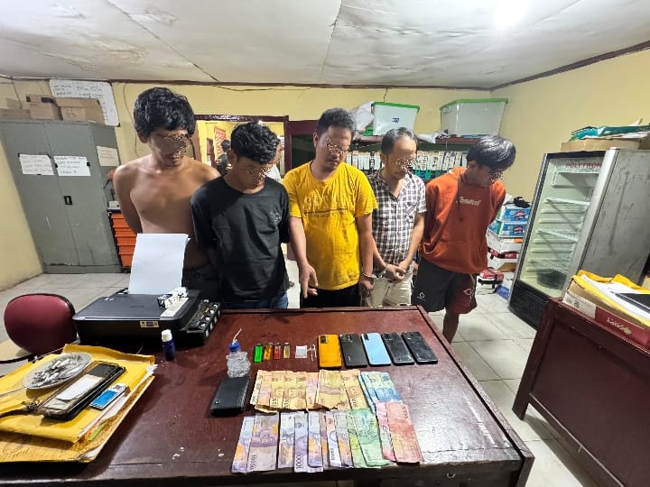 Kandis, Siak – Unit Reskrim Polsek Kandis Polres Siak Polda Riau menangkap 5 (Lima) orang pria diduga pelaku tindak pidana penyalahgunaan narkotika diduga jenis shabu di jalan Raya Pekanbaru – Duri KM 86 RT 002 RW 001 Kampung. Kandis kec. Kandis kab. Siak. (16/07/2024)