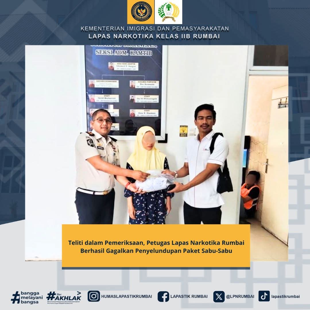 PEKANBARU || MARKIBONG.COM — Petugas Lembaga Pemasyarakatan (Lapas) Narkotika Kelas IIB Rumbai berhasil menggagalkan upaya penyelundupan paket sabu-sabu melalui layanan kunjungan warga binaan, Senin (16/03/2026).
