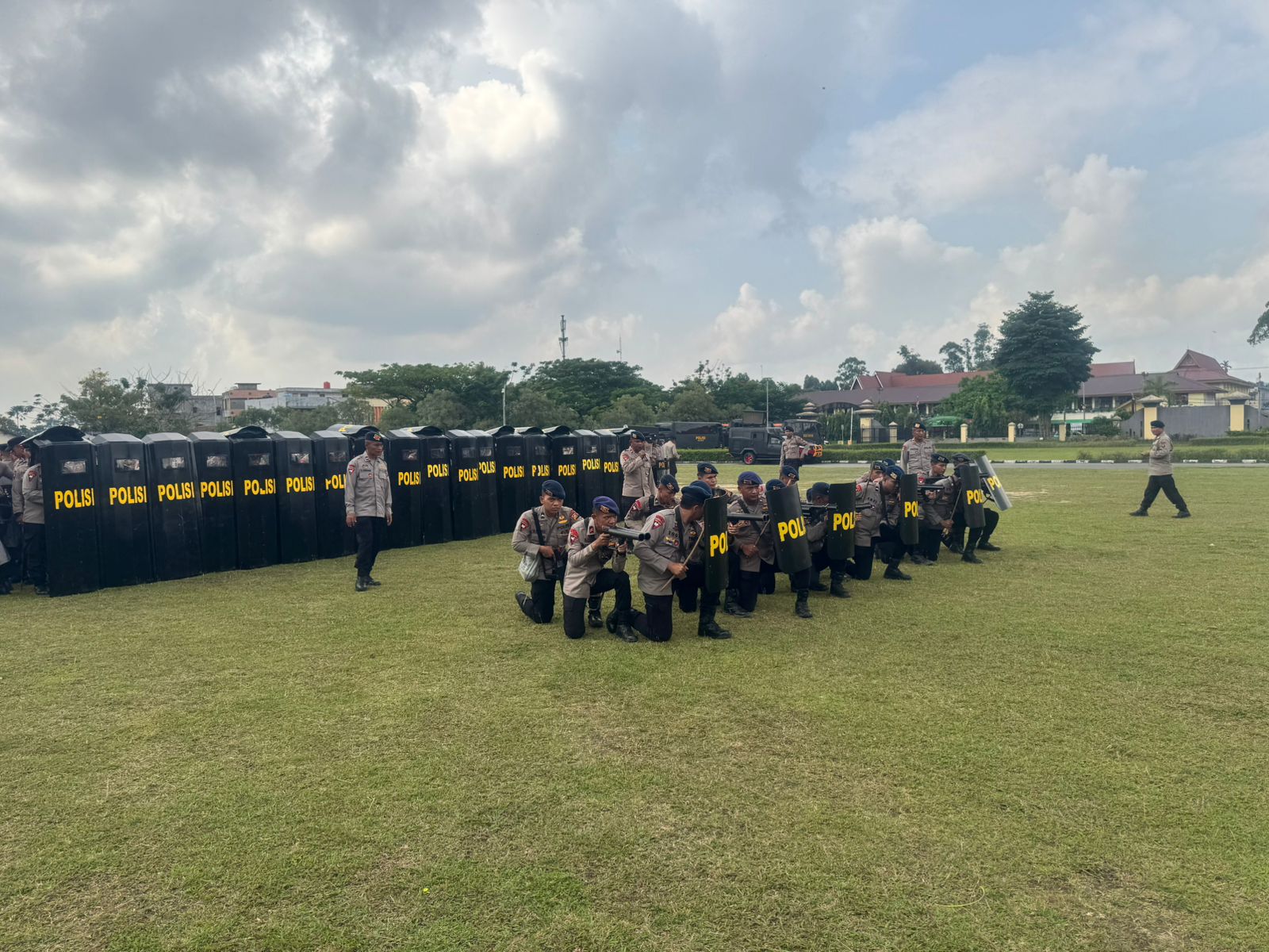 Dalam latihan yang digelar anggota Ditsamapta Polda Riau melaksanakan simulasi pengamanan, pengendalian massa, serta keterampilan dalam menangani situasi darurat.