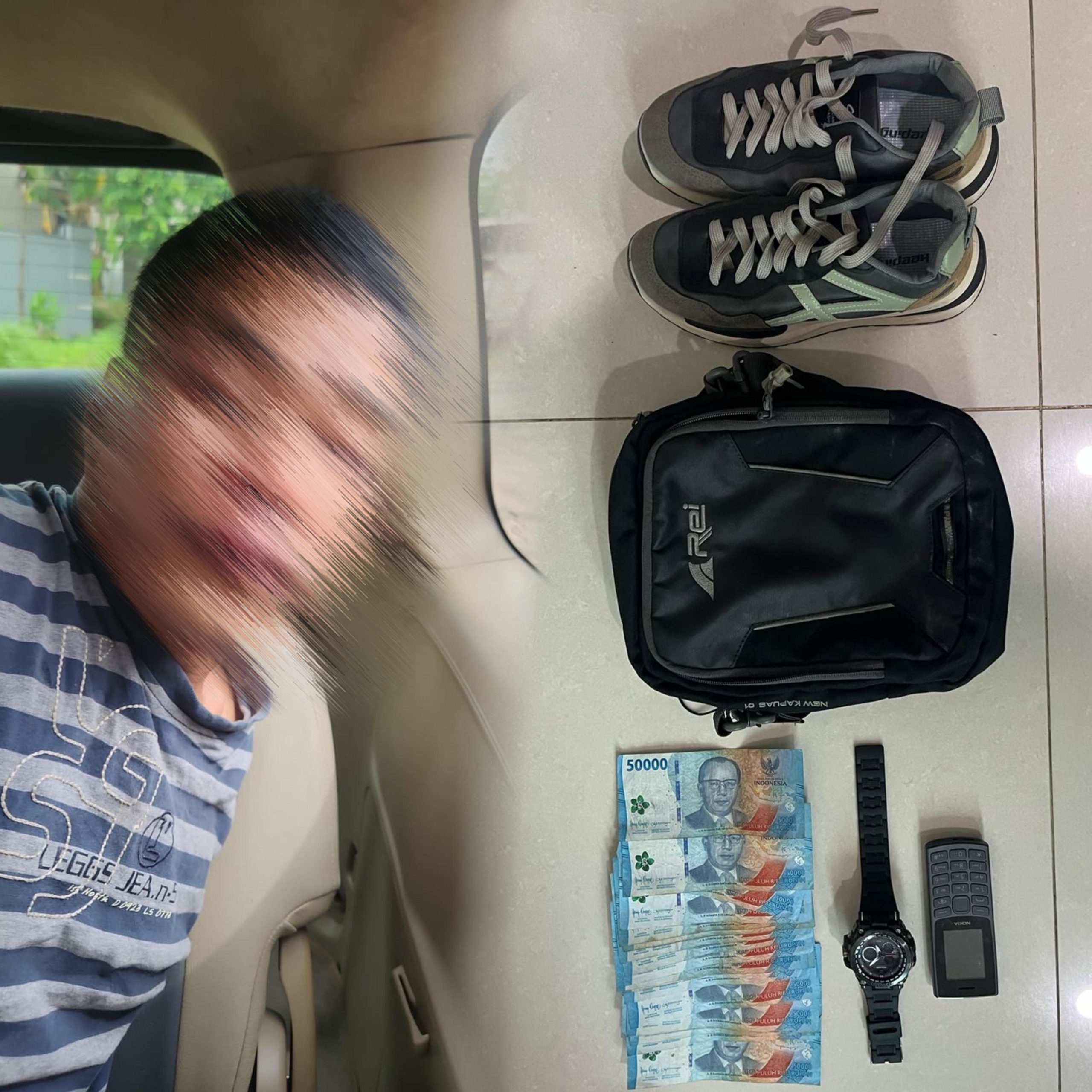 “Saat diamankan, ditemukan barang bukti uang tunai sejumlah Rp950 ribu, sebuah jam tangan, tas sandang, handphone dan sepatu. Pasal yang diterapkan yaitu 363 KUHPidana dengan ancaman 9 tahun penjara,” pungkasnya.