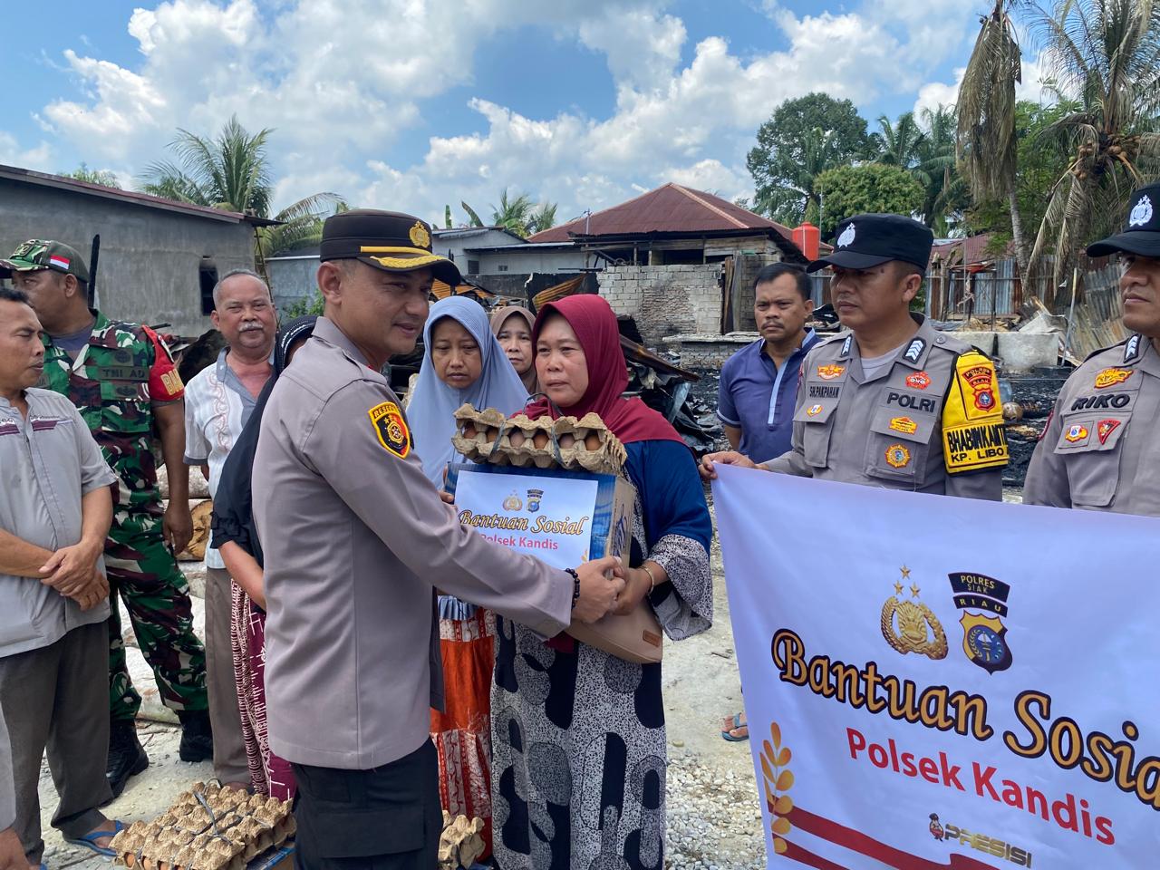 Kapolsek Kandis Kompol Herman Pelani, S.H., M.H. bersama jajaran menyalurkan bantuan berupa paket sembako kepada enam kepala keluarga yang rumahnya terdampak kebakaran. Bantuan tersebut berisi beras, telur, gula, minyak goreng, teh, dan mie instan.