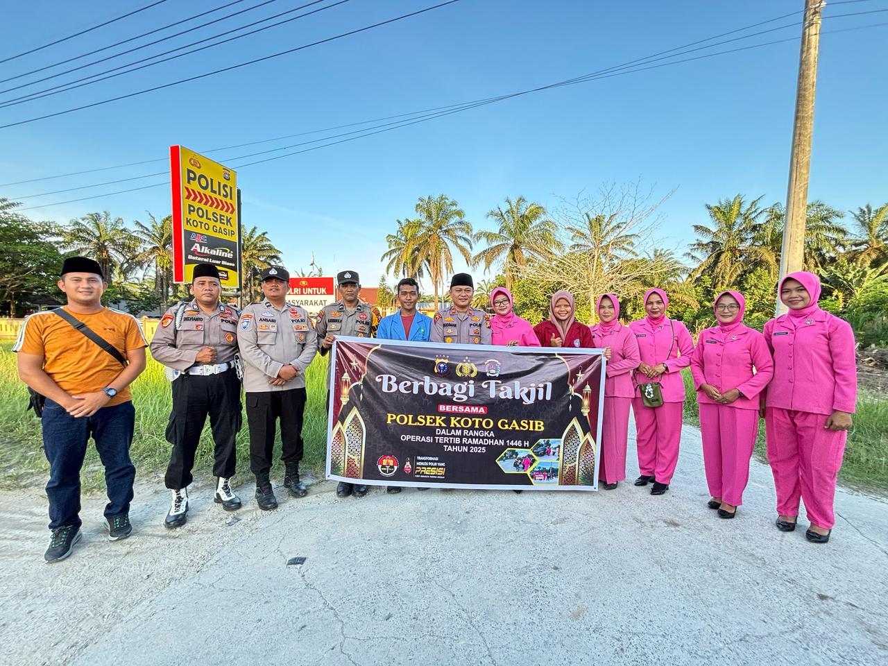Kapolsek Koto Gasib, IPTU Budiman S. Dalimunthe, S.H., M.H., memimpin langsung kegiatan ini, didampingi oleh Kanit Reskrim Polsek Koto Gasib IPDA Fuad Aprima, S.H., M.H., bersama dengan anggota Polsek, Bhayangkari Ranting Koto Gasib, serta mahasiswa dari Himpunan Pelajar Mahasiswa Koto Gasib, yang turut mendukung acara berbagi takjil ini. Tak kurang dari 200 takjil disiapkan dan dibagikan kepada masyarakat yang sedang menjalankan ibadah puasa.