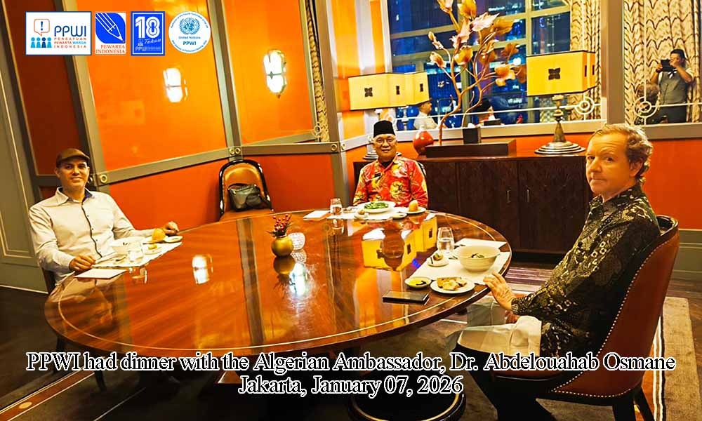 JAKARTA || MARKIBONG.COM — Dalam suasana hangat dan penuh keakraban, Persatuan Pewarta Warga Indonesia (PPWI) menggelar pertemuan khusus dengan Duta Besar Republik Demokratik Rakyat Aljazair untuk Indonesia, Yang Mulia Dr. Abdelouahab Osmane. Pertemuan berlangsung pada Rabu malam, 7 Januari 2026, pukul 19.00 WIB, di Jakarta, dengan format makan malam bersama yang berlangsung selama dua jam.