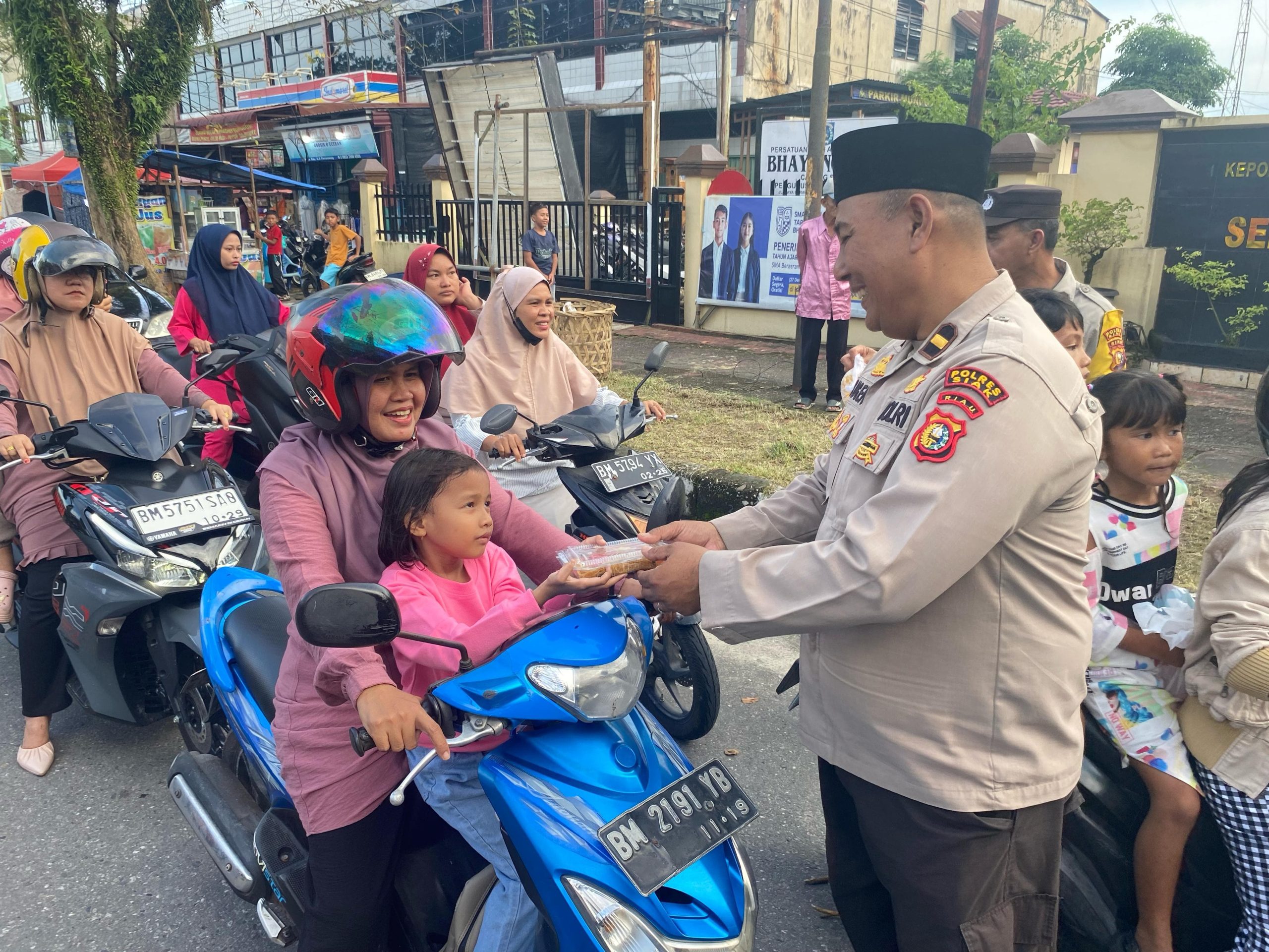 Kapolsek Tualang Kompol Hendrix.SH.MH melalui Ps. Kasi Humas Aiptu Jonas menjelaskan dilaksanakannya kegiatan pembagian Takjil kepada Masyarakat, dengan menggandeng BKMT (Badan Kontak Majelis Taklim) Kecamatan Tualang dapat membantu warga yang hendak berbuka puasa.