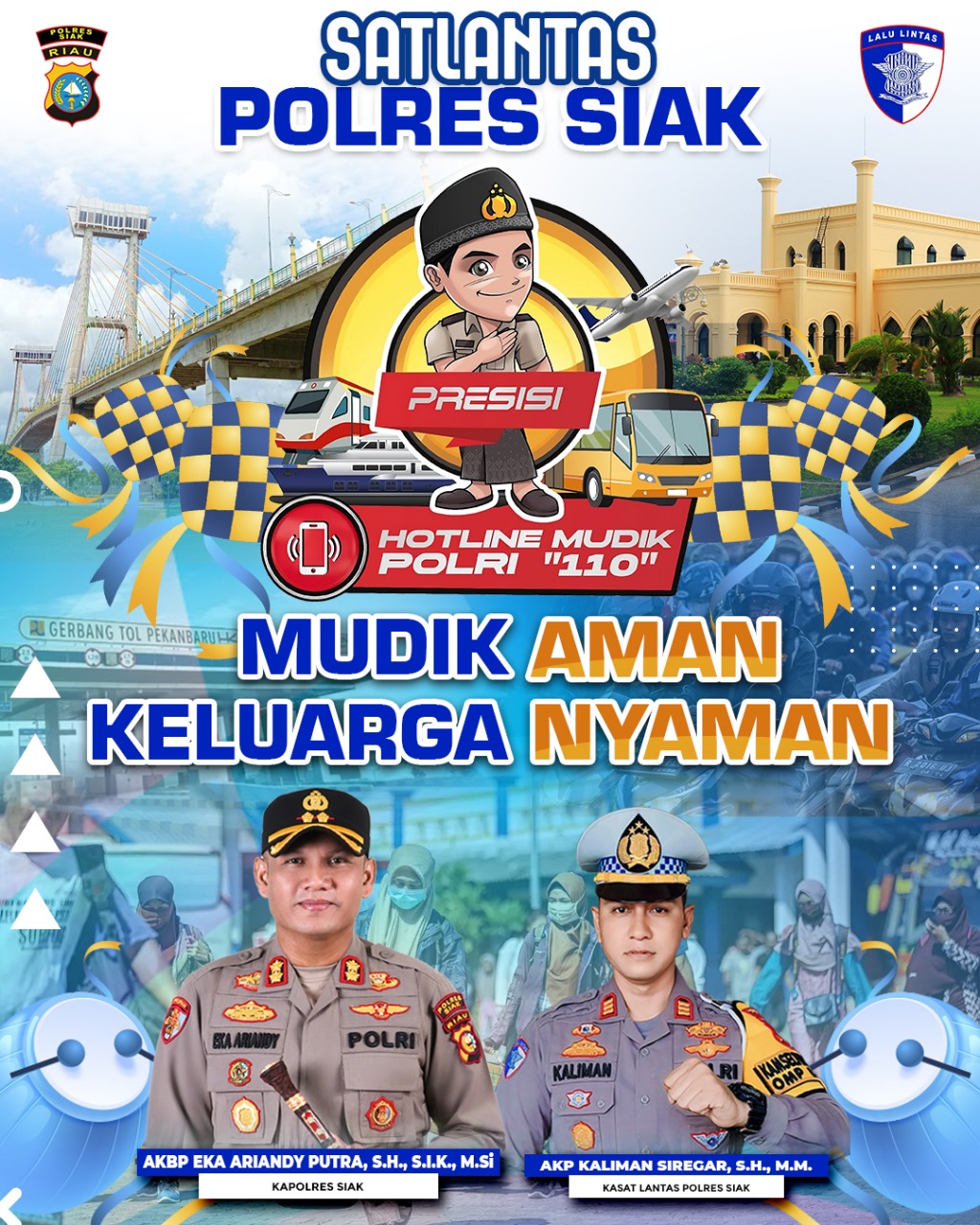 Kapolres Siak, AKBP Eka Ariandy Putra, S.H., S.I.K., M.Si., melalui Kasat Lantas Polres Siak, AKP Kaliman Siregar, S.H., M.M., mengungkapkan bahwa Polri berkomitmen untuk memastikan kelancaran dan keamanan arus mudik Lebaran 2025. “Kami ingin para pemudik merasa tenang dan aman selama perjalanan. Layanan _hotline_ 110 ini sangat penting untuk mengatasi masalah atau keluhan yang terjadi di lapangan,” ujarnya.