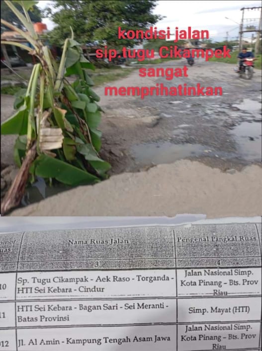 “Ahmad (kadis) perhubungan Labuhan batu selatan (Labusel) didampingi staff nya Roy Mantik Hutabarat mengatakan,”Bang jalan dari Tugu Cikampak menuju HTI dan sampai ke Cindur provinsi Riau sesuai status jalan sudah menjadi jalan nasional hal itu tertuang di keputusan bupati Labuhan batu selatan Nomor : 600/ 209/DPU-LS/2016 yang artinya tanggung jawab akan jalan tersebut sudah ada di pusat,”Ucapnya.
